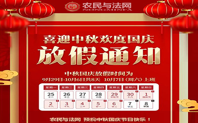 2023年喜迎中秋歡慶國(guó)慶,至此雙節(jié)來(lái)臨之際農(nóng)民與法網(wǎng)預(yù)祝中秋國(guó)慶節(jié)日快樂(lè)!